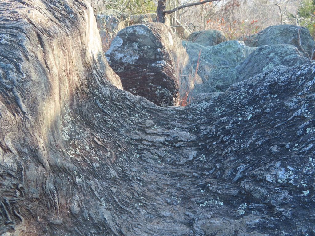 An orogeny is defined as the formation of mountains through structural disturbance of the earth’s crust through folding and faulting. In other words, the drift of one continental plate is arrested by the inertia of its neighbor as the edges of both are crumpled on impact. The Appalachian Mountains are the result of the Eurasian, African, and the North American plates coming together in three separate orogenetic events called Taconic, Acadian, and Appalachian that occurred with geologic persistence over millions of years involving sequential collisions with various land masses now intermingled within the twisted rocks that remain. The Taconic orogeny occurred in the later Ordovician Period ~ 450 million years ago when Pangea first started to form. Island arcs called terranes to the east in the Iapetus Ocean (the predecessor to the Atlantic – Iapetus was the father of Atlantis in Greek mythology) were pushed into and upon the North American Plate. These would be similar to the islands of Great Britain and Japan off the western and eastern sides of the Eurasian Plate. The resultant formations are a hodgepodge of igneous blocks and sediments with some sections of oceanic crust material like the serpentinite of Soldier’s Delight in Maryland. The Acadian orogeny followed as the Eurasian plate collided in the north causing extensive volcanic activity, uplifting, and metamorphic folding in New England and southeastern Canada in the region called Acadia with less uplift to the south. The collision of the African plate with the North American plate about 250 million years ago is called the Appalachian orogeny as it was the coup de grâce for its namesake result, which were originally as high and jagged as the Rockies. [9] The dynamism of plate tectonics never ceases and eventually Pangaea broke apart along the seam that is now the Atlantic ridge in middle of the expanse of water that fills it. What remains is the complicated and postulated geology of the Patapsco and Potomac River basins.
