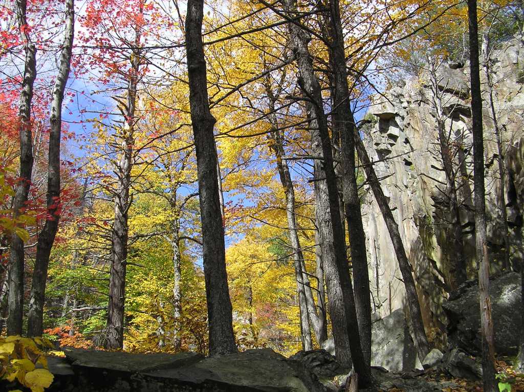 A more scientific explanation of autumnal leaf senescence is a bit more complicated. Deciduous trees (those that lose leaves … evergreens are ever green) have a layer of cells at the base of each leaf called the abscission. Seasonal temperature fluctuations eventually reach a sensory limit based on tree type and habitat signaling the abscission cells grow a cork-like membrane to interrupt the flow of nutrients to the leaf. The seasonal variations of environmental influence on biological function is called phenology, the scientific field that governs the degree and timing of fall colors. The leaf, now bereft of any nutrition, begins to die. The first thing to go is the chlorophyll, as it requires a robust nutrient flow to maintain the photosynthetic factory, which is officially closed for the season. So much for the verdant hues of summer. The yellow carotenes and xanthrophylls are large molecules sharing space in the chloroplasts with the now defunct chlorophyll, and also populating the separate chromoplasts. They are more stable than chlorophyll since they are not directly involved in photosynthesis so they persist, resulting in the crown of yellow leaves that invite the sun’s brilliance to the dark of the woods. The red of anthocyanin is another matter. It is not a permanent leaf chemical constituent but must be manufactured by the plant, a matter of some complexity and energy expenditure. The classic explanation for anthocyanin is that it is produced by plants that have high sugar content. When the abscission layer forms in the fall, the sugar is trapped in the leaf and is converted to anthocyanin. Thus, when you have a dry, low H2O summer, little sugar is produced, and the fall colors are subdued. In point of fact, however, quite the opposite is true, as a hot, parched summer is likely to yield more color. Research into the phenology of fall foliage over the last several decades has upended the traditional rationale. Anthocyanin production by different plant species is a complicated phenomenon and not just a matter of sugar. [4]